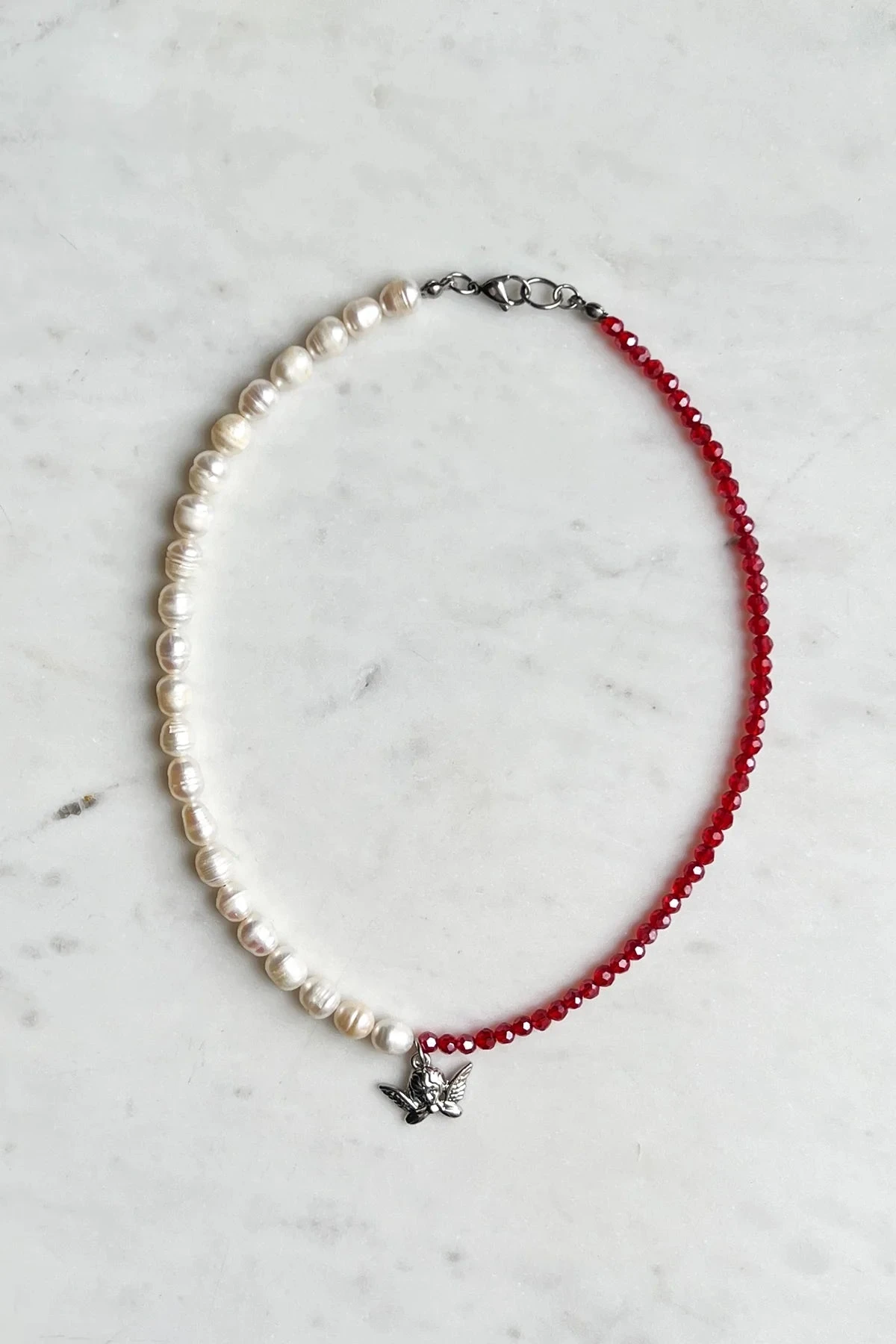 SKU: ZGLWC 7664830447787 Categories: ACCESSORIES, CLOTHING Tags: Dreamsbaby jewels, Full Price, PDP-SILVER-CHERUB-NECKLACE, Red