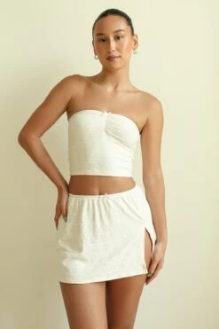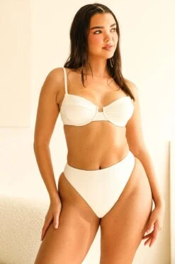 You’ll be saying “thank you” when you’re wearing your Merci Top! Featuring capped sleeves and a unique style, this bikini top is a sure-fire way to make waves! With its low-cut style and flattering fit you can wear the Merci Top in the water or paired with jean shorts for a surfer style.