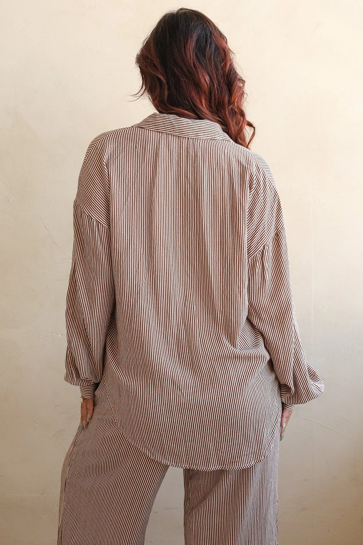 A breathable cotton long sleeve button-down thatβs easy to wear as a standalone piece or layered over your favorite bikini. Pair with our matching Marina Grande Pants for the cutest striped cover-up set.