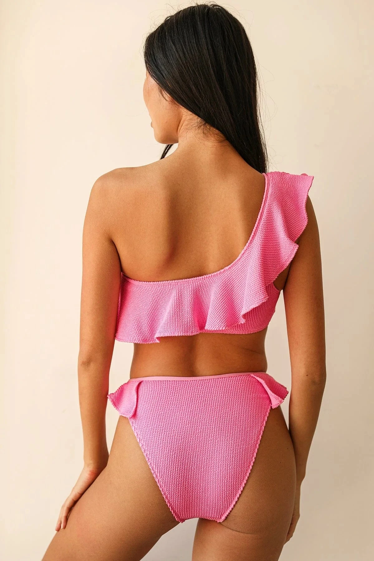 Our Poppi Bottom is the NEW higher waist look! Perfect for the girl who loves high waisted coverage but still wants to look darling. The Poppi Bottoms have the cutest side ruffles for a little added detail and make this bikini look all the more precious.